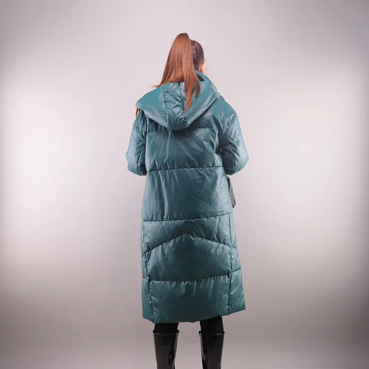 High Green Womens Puffer Light Down Jacket Long Trimming Hooded Windproof Pu Leather Puffer Coat For Winter And Spring Buy Womens Puffer Light Down Jacket Pu Leather Puffer Coat Product On Alibaba Com